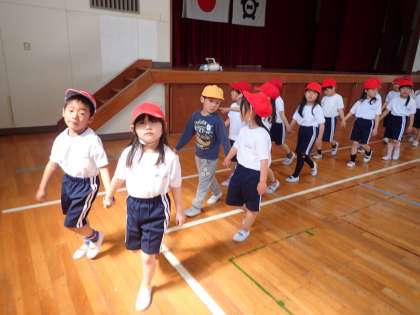遠足に向けて、並んで歩く練習をみんなでしました。