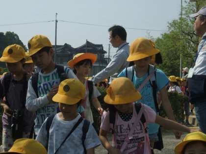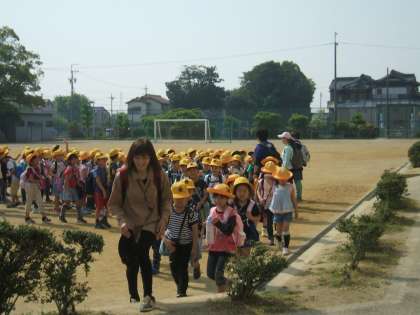1・2年生は万葉公園、3・4年生は柳下公園、5・6年生は彦田公園まで出かけます。