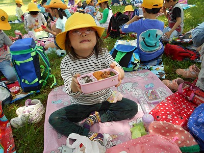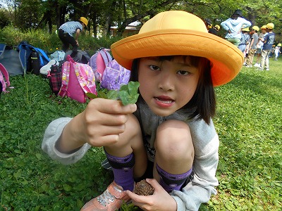 萬葉公園では遊具で遊んだり、四葉のクローバーを探したりしました。