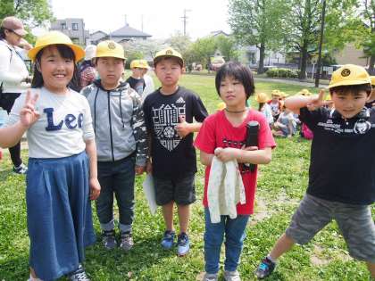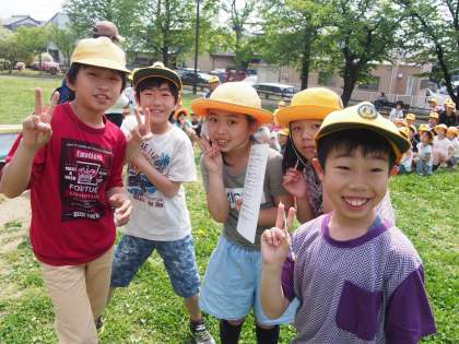 暑い中、みんながんばって歩いて柳下公園まで行きました。