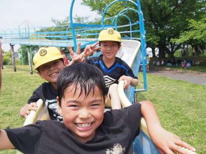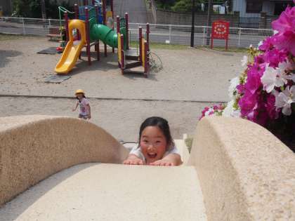 ローラーすべり台や石のすべり台などでは楽しく遊んでいました。