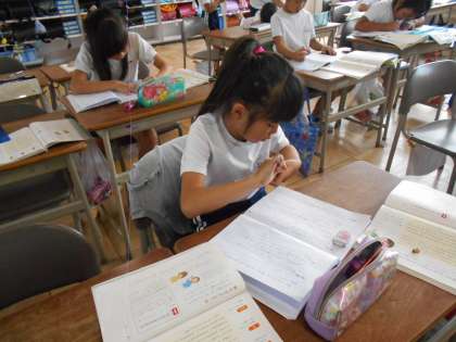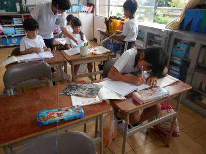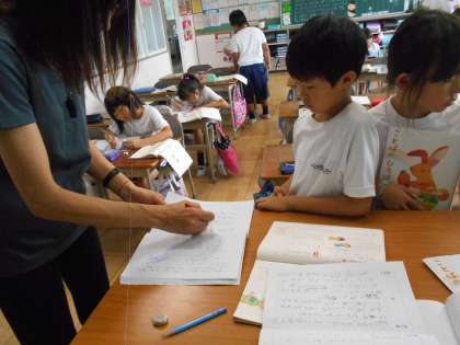 内容を考えて、先生の添削を受けていました。