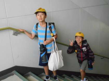 登校してきた3年生と6年生。
