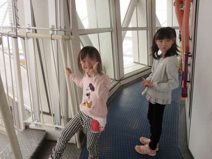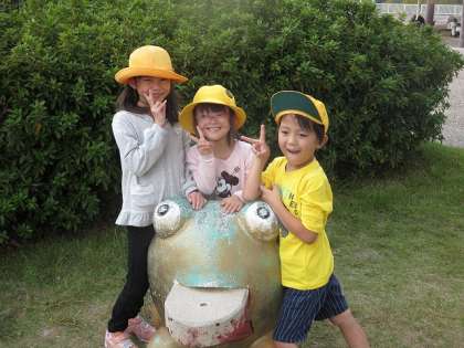 3人の子どもたちは、遊具で楽しく遊ぶことができました。