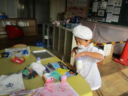 なかよし学級の給食当番。 牛乳が冷たい!?