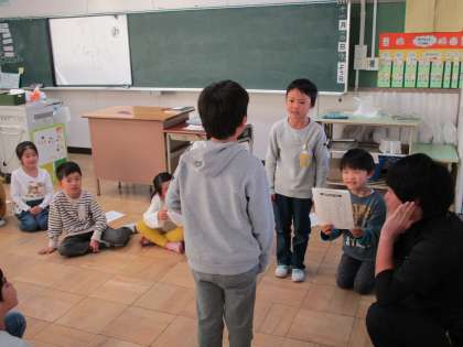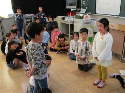 チーム対抗で正しく速く正確に九九が言えるかどうか競います。