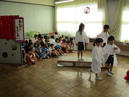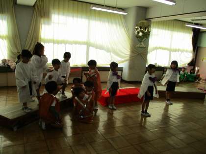家庭科室で発表する劇の練習です。