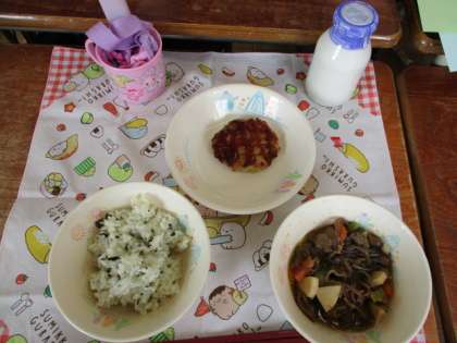 わかめご飯 牛乳 牛肉と糸こんにゃくのいりに