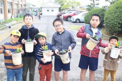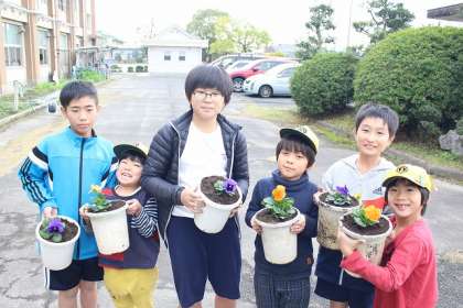 ペア学級の1年生と、鉢植えを行いました。