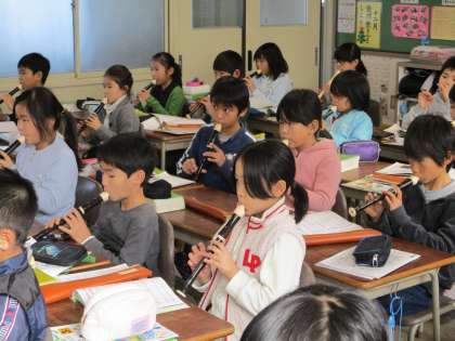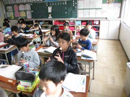 リコーダーで繰り返し練習をしていました。