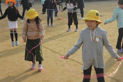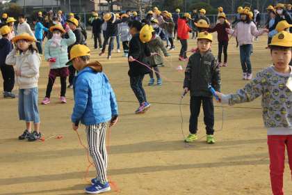 今日は、朝の時間に全校で縄跳び大会の練習がありました。
