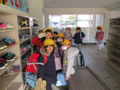 登校してきた1年生。
