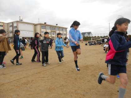 長縄跳びでは、跳ぶ人、回す人、応援する人がひとつになり、すてきでした。