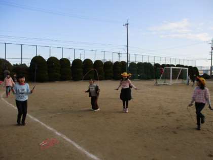 縄跳びをする4年生。