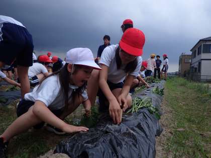 1年生とペアで苗植えをしました。