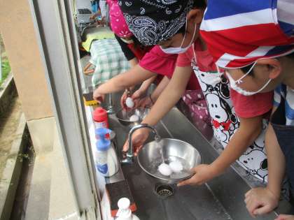 ゆでたまごの調理実習。