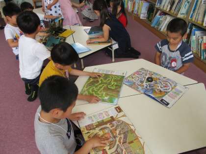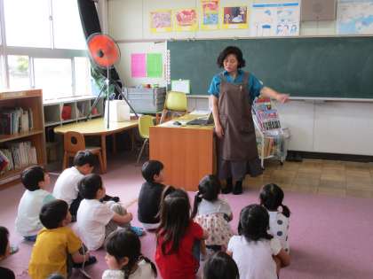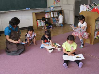 としょかんの せんせいから おはなしをきいたあと、よみたいほんを えらびました。