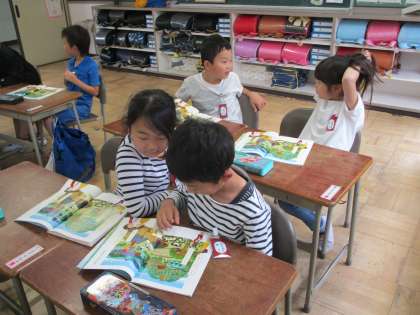 えをみて、なにがいるのか、どこにいるのか、ペアでつたえあいます