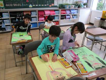 おおきく うごきのある えをかきます。