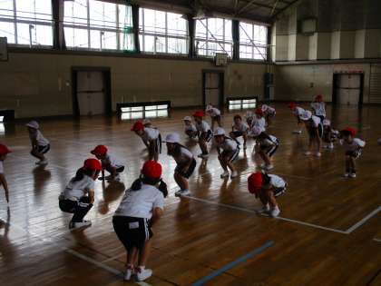 たいいくかんで うんどうをします。