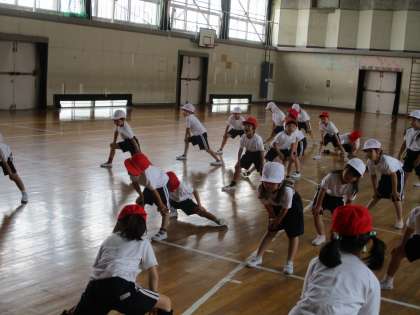 しっかりたいそうをしてから うんどうをします。
