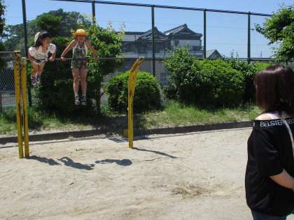 1回転できるようになったよ! こんな高い鉄棒に登れたよ!