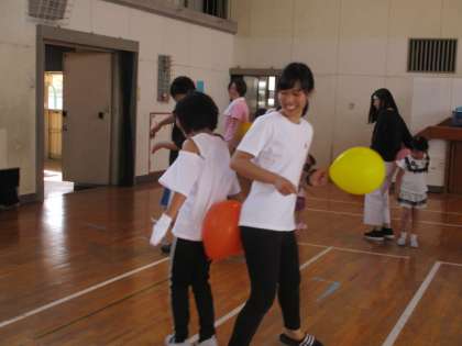 風船を前向きと背中合わせで運ぶ。
