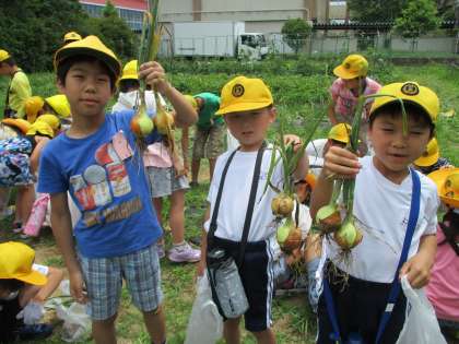 本日、ペア学年で「玉ねぎ収穫」を行いました。