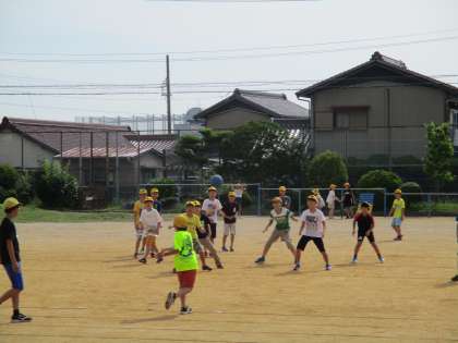 登校後、運動場で元気に遊びます。