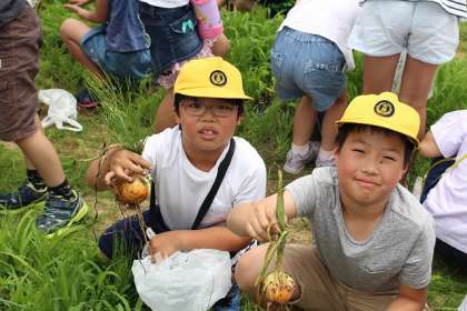 ペア玉ねぎ収穫の様子。