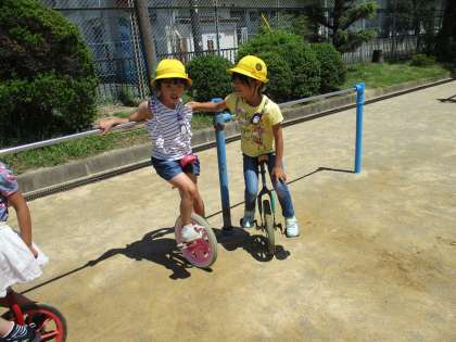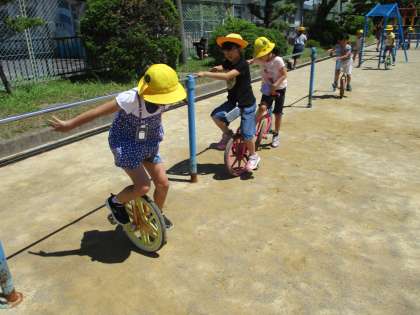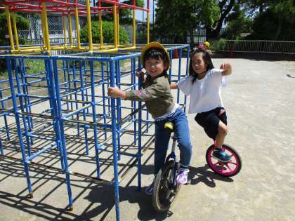 まずは、鉄棒やジャングルジムにつかまって練習し、
