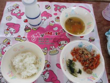 ご飯 牛乳 わかめスープ ビビンバ ビビンバの野菜