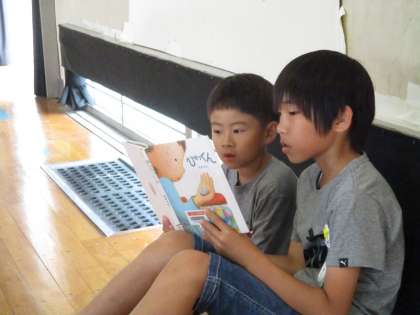 6年生のお兄さんお姉さんが、1年生のペアの子に読み聞かせをしました。
