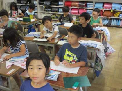 1年2組の教室。
