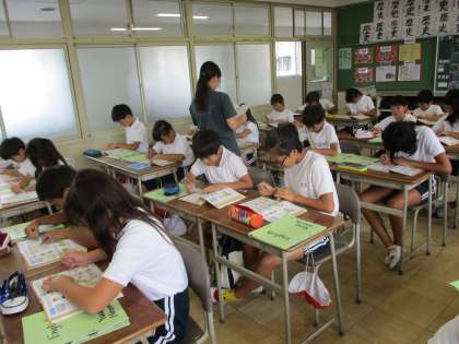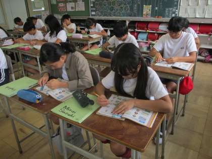 担任の先生が話す英語を聞き取り、問題を解きます。