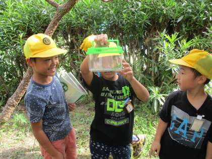校庭にいる虫を探します。
