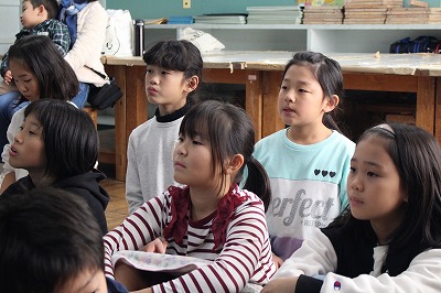 11・19(火) 4年生 大型スクリーン読み聞かせ