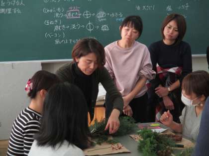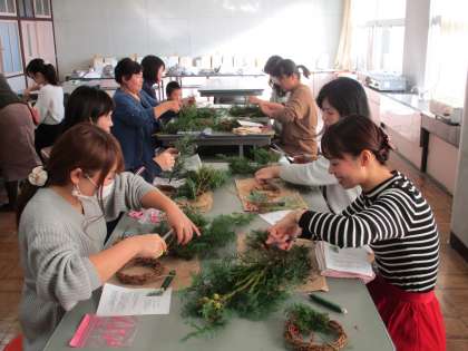 本日、講師の先生をお招きし、「インテリアリース作り」を行いました。