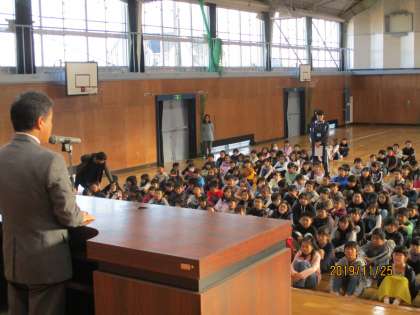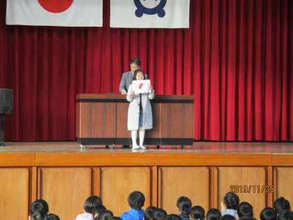 表彰伝達のあと、校長先生からは、「物には心があり、人の心も物の心も傷つけることはよくありません。大切に使いましょう」というお話がありました。