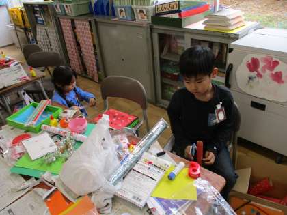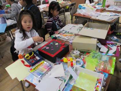 あきばこに いろいろな かざりを つけます。