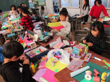 空き箱などを使って作っています。
