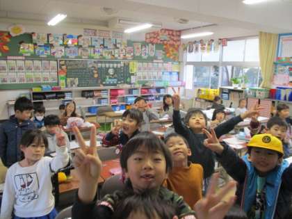 1年生の教室で。