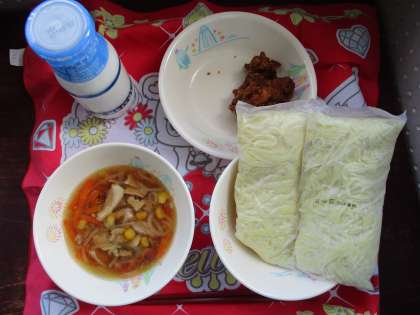 【献立】 ちゅうかめん 牛乳 しょうゆラーメン とり肉のからあげ