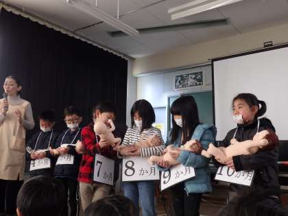赤ちゃんの心臓の音と2年生の心臓の音を比べたり、だっこ体験など貴重な経験をさせていただき、命の大切さについて考えることができました。