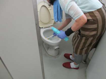 本日もボランティアの方にトイレ掃除と消毒をしていただきました。