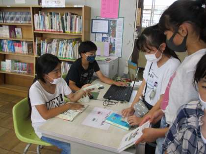 森の図書館の様子。 図書委員会 本の返却作業。