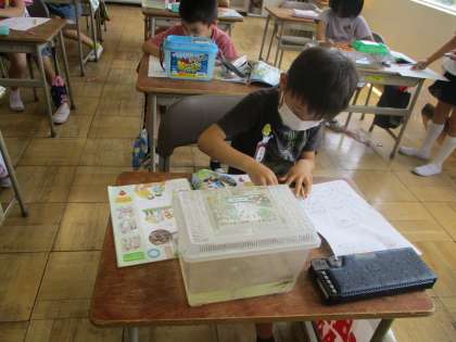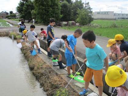 昨日、近くの田に生活科の学習で「生きものさがし」に出かけました。
