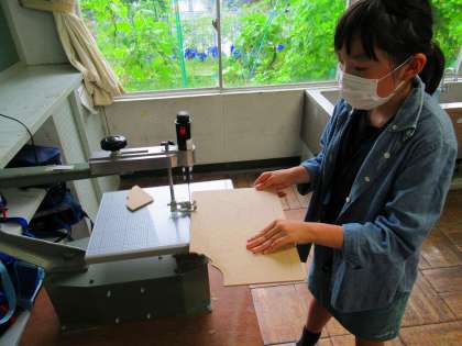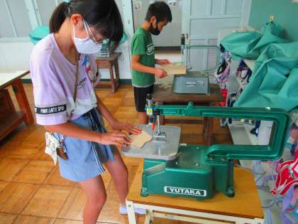 設計図をもとに、糸のこを使ってパーツを切っていきます。
