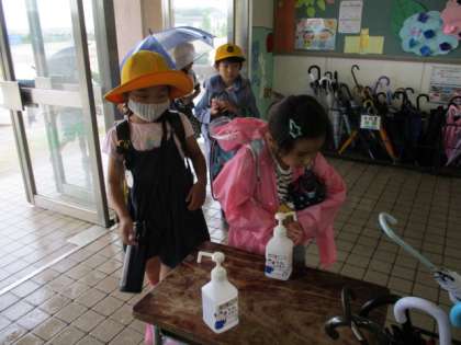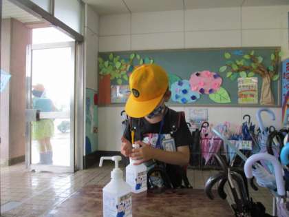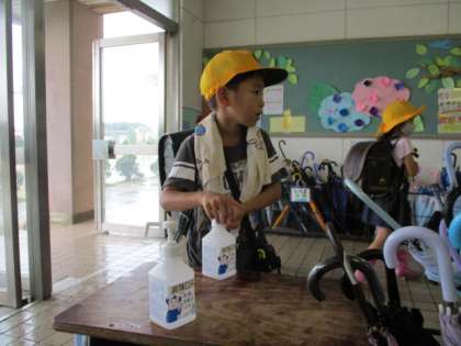 手指のアルコール消毒!