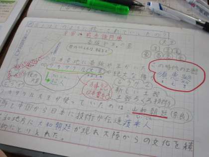 6年生。 歴史の授業のノート。 丁寧に書き残す。